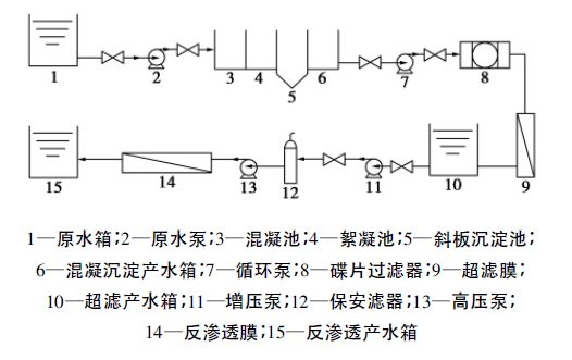 本实验以“预处理+ 超滤+ 反渗透”工艺作为主体工艺,设计制造中试实验装置,并利用该装置处理回用焦化废水,考察各单元产水水质指标及变化规律、系统运行稳定性和超滤膜元件的化学清洗效果等,旨在为双膜法工艺处理回用焦化废水项目的实施提供准确全面的技术和理论依据。