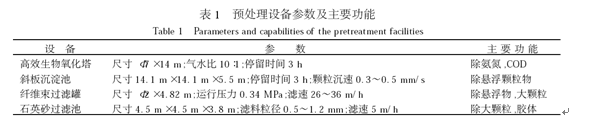 本工艺所处理的原水为市政污水处理厂的二级出水,预处理部分主要控制原水中的有机物、氨氮、颗粒物等杂质。